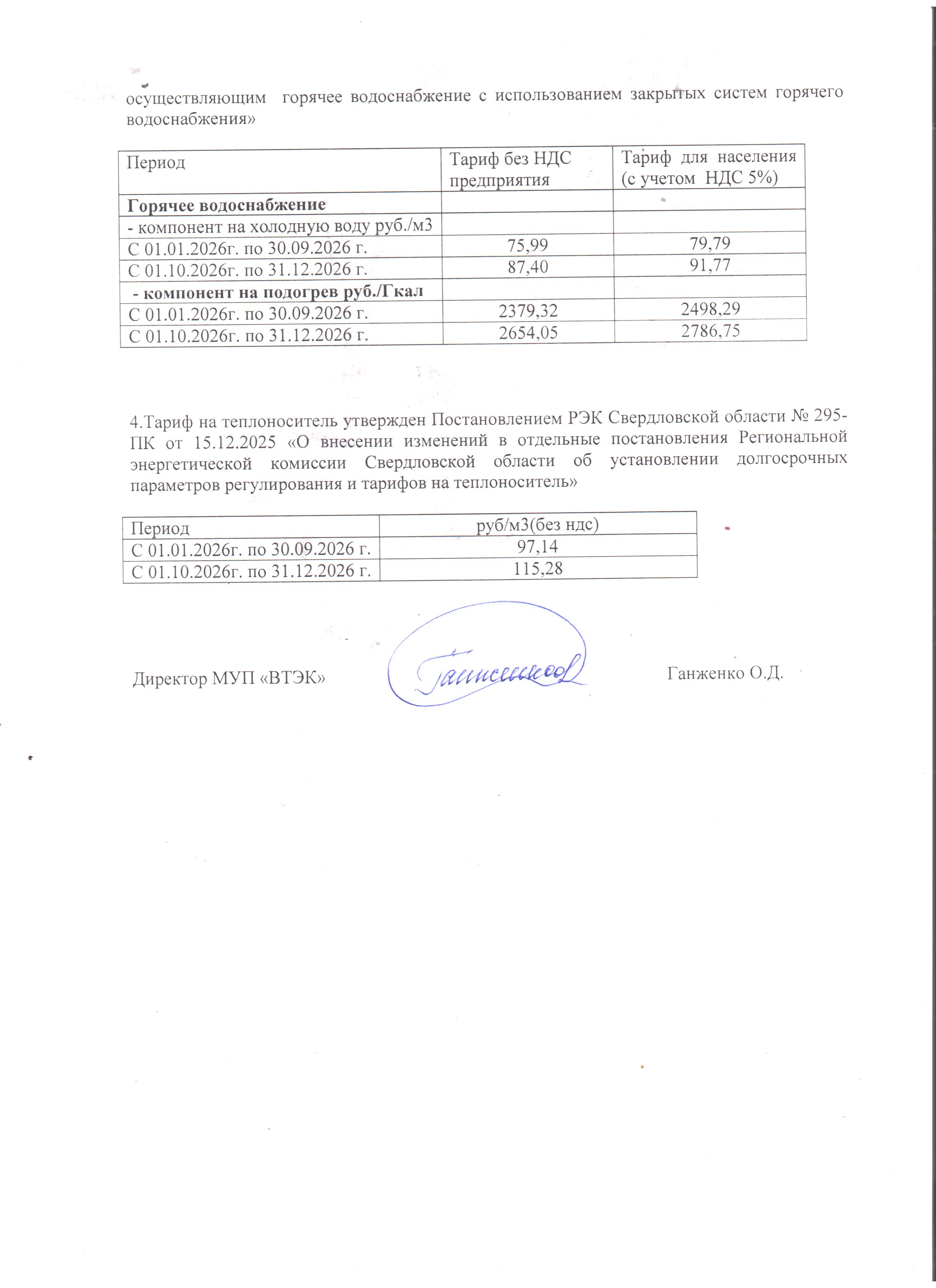 Тарифы | МУП «Волчанский ТЭК»